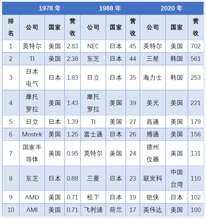 1986年日本半导体达到巅峰,全球占比80%左右。1993年,据统计全球前十的半导体公司中,日本独占六家。20年发展的如此一帆风顺,使得日本开始自负起来,对美国的依赖也开始动摇,富士通甚至打算收购仙童半导体公司80%的股份,而日本政府对半导体行业的重视程度也开始降低。正所谓骄兵必败,美国一记重拳彻底粉碎了日本的半导体美梦。