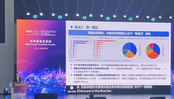 在2024年7月4日下午举行的世界人工智能大会科学前沿主论坛上,由中国科学技术信息研究所与北京大学联合研制的《2023全球人工智能创新指数报告》正式发布。中国科学技术信息研究所党委书记、中国软科学研究会副理事长赵志耘在发布会上介绍,尽管美国和中国在总体格局上保持领先,但中国尚未形成绝对优势的核心竞争力。