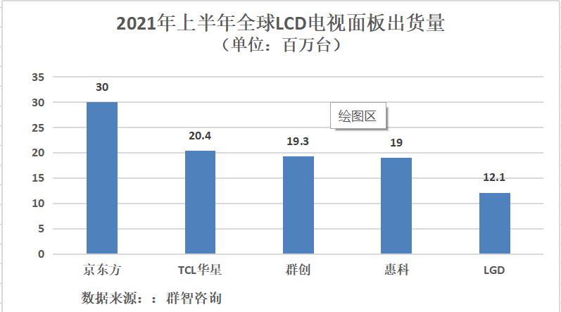 在LCD领域,我国大陆面板厂商开始主导全球产能。综合相关数据来看,我国大陆LCD面板产能在2021年占全球产能达67%,面板出货量有望达到1.44亿平方米,预计到2025年我国大陆LCD产能占比将达到79%,我国液晶面板的市场定位已从保障国内面板供给转向服务全球。同时,市场份额也逐渐向行业头部企业集中,行业集中度大幅提升,供需结构持续改善。群智咨询数据显示,2021年上半年,全球LCD TV面板出货量排名前五位的面板厂商分别为京东方、TCL华星、群创、惠科和LGD,其中有四家来自中国。业内人士认为,LCD行业将由投资驱动的高速发展期逐步进入成熟期,由供给周期主导的大幅周期性波动转为由需求淡旺季影响的窄幅波动。